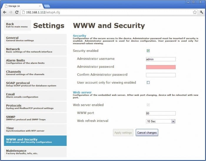 Web Sensor with PoE - four channels remote thermometer hygrometer