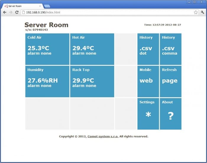 Data centers, server rooms - Temperature and humidity monitoring, data center monitoring, RACK stands, including flood status reports, opening / closing of doors (windows), motion, smoke. SNMP monitoring, remote alarms by email and Syslog.