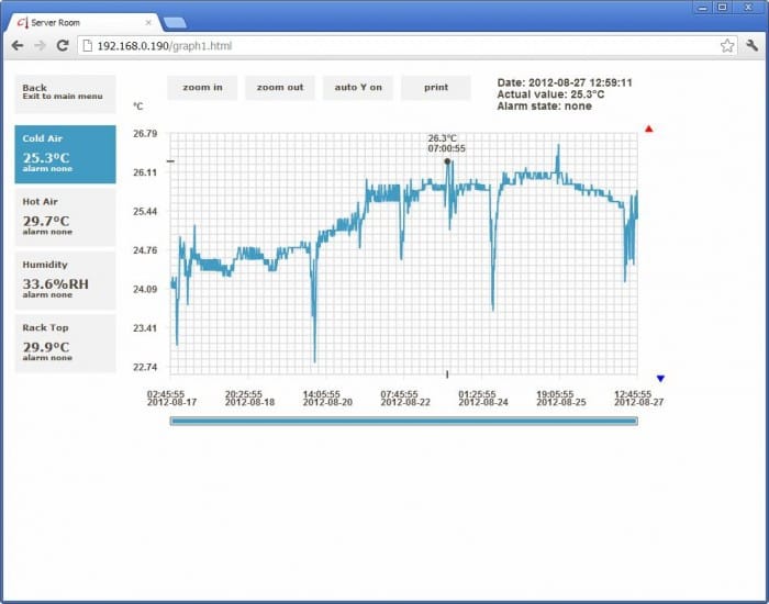 Data centers, server rooms - Temperature and humidity monitoring, data center monitoring, RACK stands, including flood status reports, opening / closing of doors (windows), motion, smoke. SNMP monitoring, remote alarms by email and Syslog.