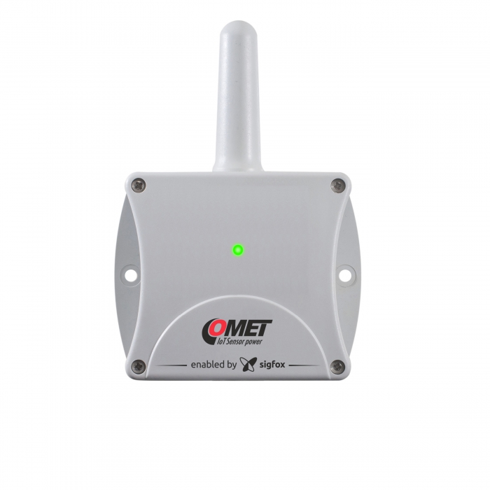 The instrument can monitor up to 2 alarm limits of the measured variable. Exceeding these limits is indicated by sending an emergency message. COMET Cloud transmits this alarm message via e-mail to the selected user. The device is suitable for applications that tolerate the delay of information delivered by Sigfox (max. 10 min).
